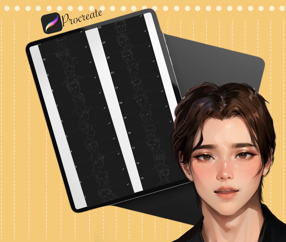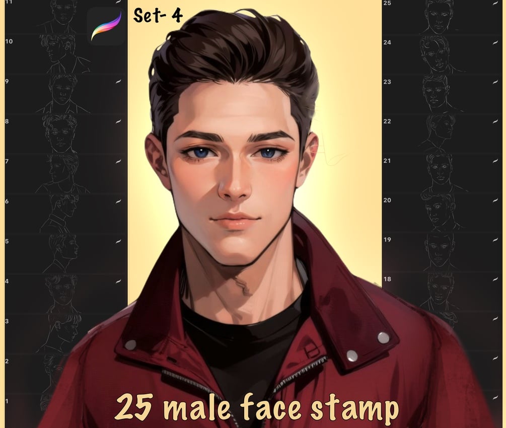 Unlock your creativity with this meticulously crafted Procreate Male Face Stamp (set-4). Perfect for digital artists and illustrators, this stamp offers a versatile collection of female facial features, allowing you to effortlessly add depth and character to your artwork. With high-resolution details and seamless integration with Procreate, elevate your designs with ease and precision. Whether you're sketching portraits or designing characters, this stamp set is your ultimate tool for bringing your visions to life. Upgrade your digital art game today with the Procreate Female Face Stamp