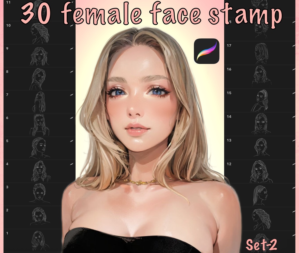 Unlock your creativity with this meticulously crafted Procreate Female Face Stamp (set-2). Perfect for digital artists and illustrators, this stamp offers a versatile collection of female facial features, allowing you to effortlessly add depth and character to your artwork. With high-resolution details and seamless integration with Procreate, elevate your designs with ease and precision. Whether you're sketching portraits or designing characters, this stamp set is your ultimate tool for bringing your visions to life. Upgrade your digital art game today with the Procreate Female Face Stamp
