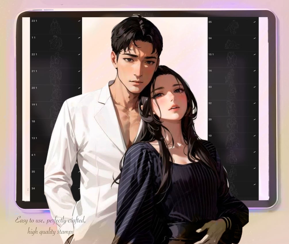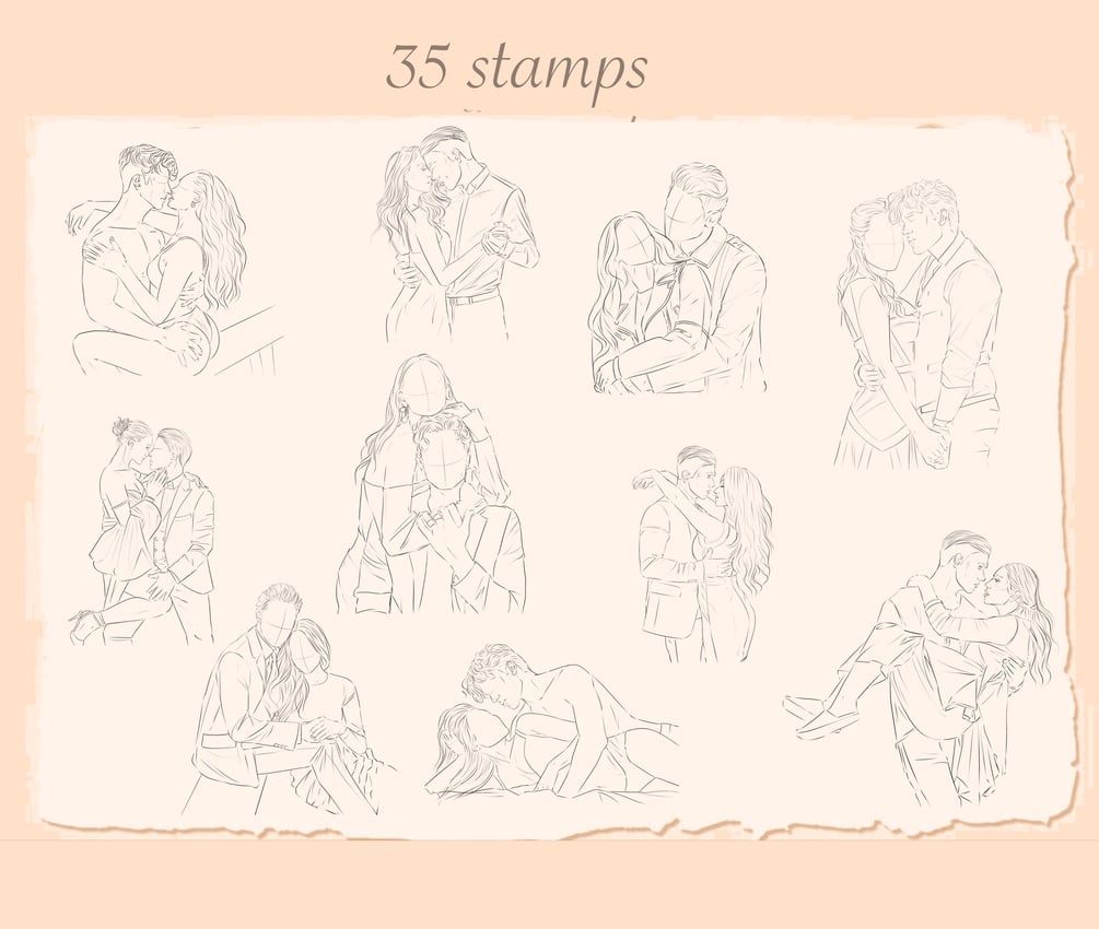 Introducing Procreate Couple Stamps: Elevate your digital artistry with this versatile collection of meticulously crafted stamp brushes designed specifically for Procreate. Whether you're illustrating romantic scenes, crafting heartfelt messages, or simply adding a touch of love to your artwork, these stamps offer an array of diverse poses, expressions, and interactions between couples. With high-resolution detail and seamless integration into your Procreate workflow, these stamps empower you to effortlessly bring your creative visions to life. Perfect for digital artists, illustrators, and designers seeking to infuse their work with authenticity and emotion. Unlock endless possibilities and express your love through art with Procreate Couple Stamps.
