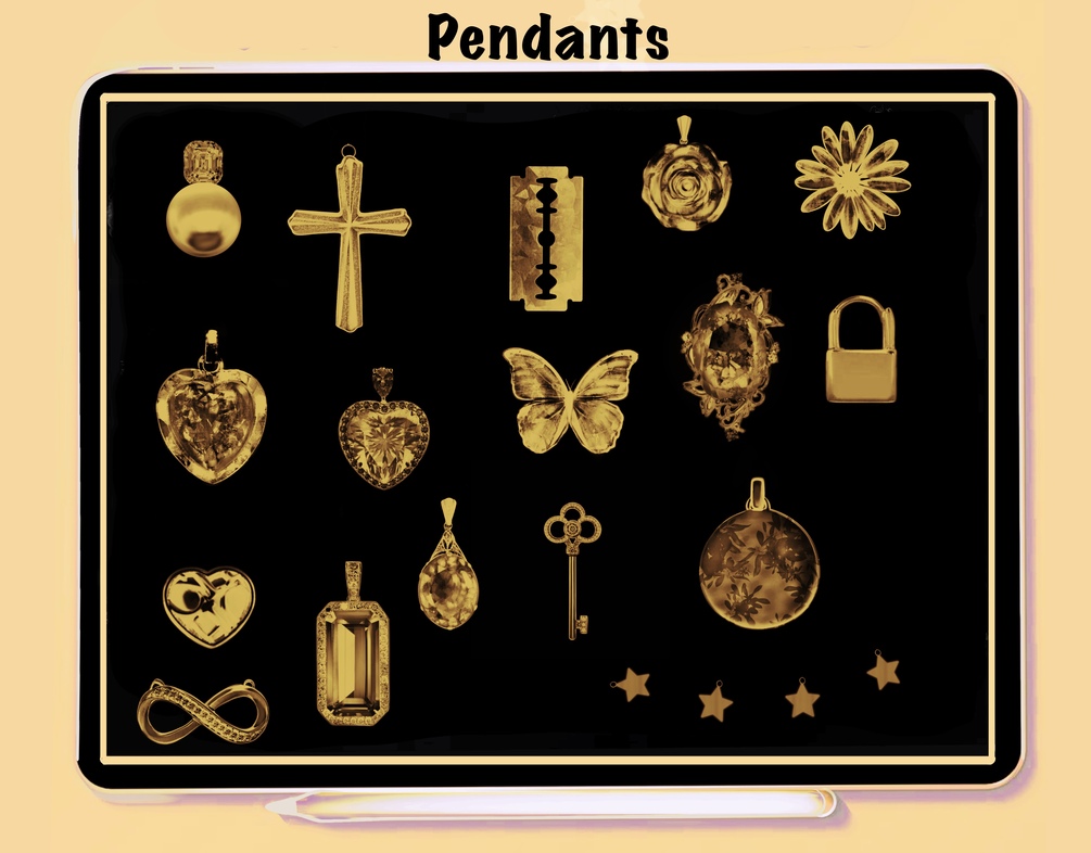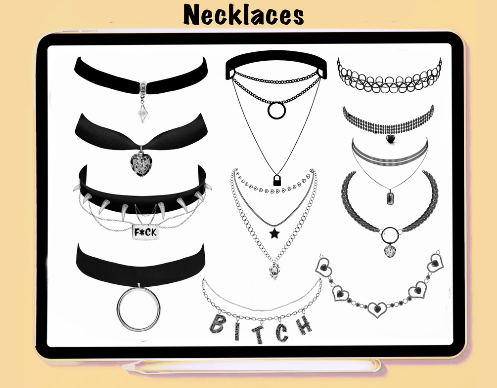 Jewelry brushes for procreate (set of 90), necklace brushes, choker brushes, pendant brushes, earring brushes.