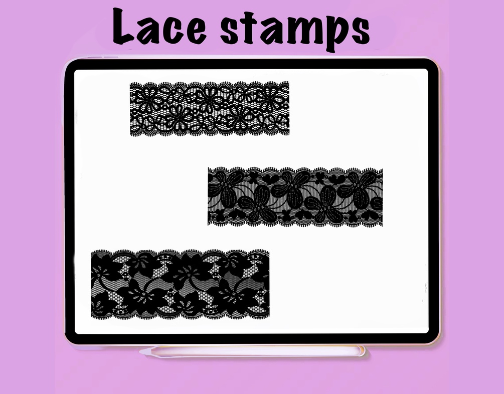Your purchase includes: 45 lace patterns, 30 lace borders, 3 lace stamps